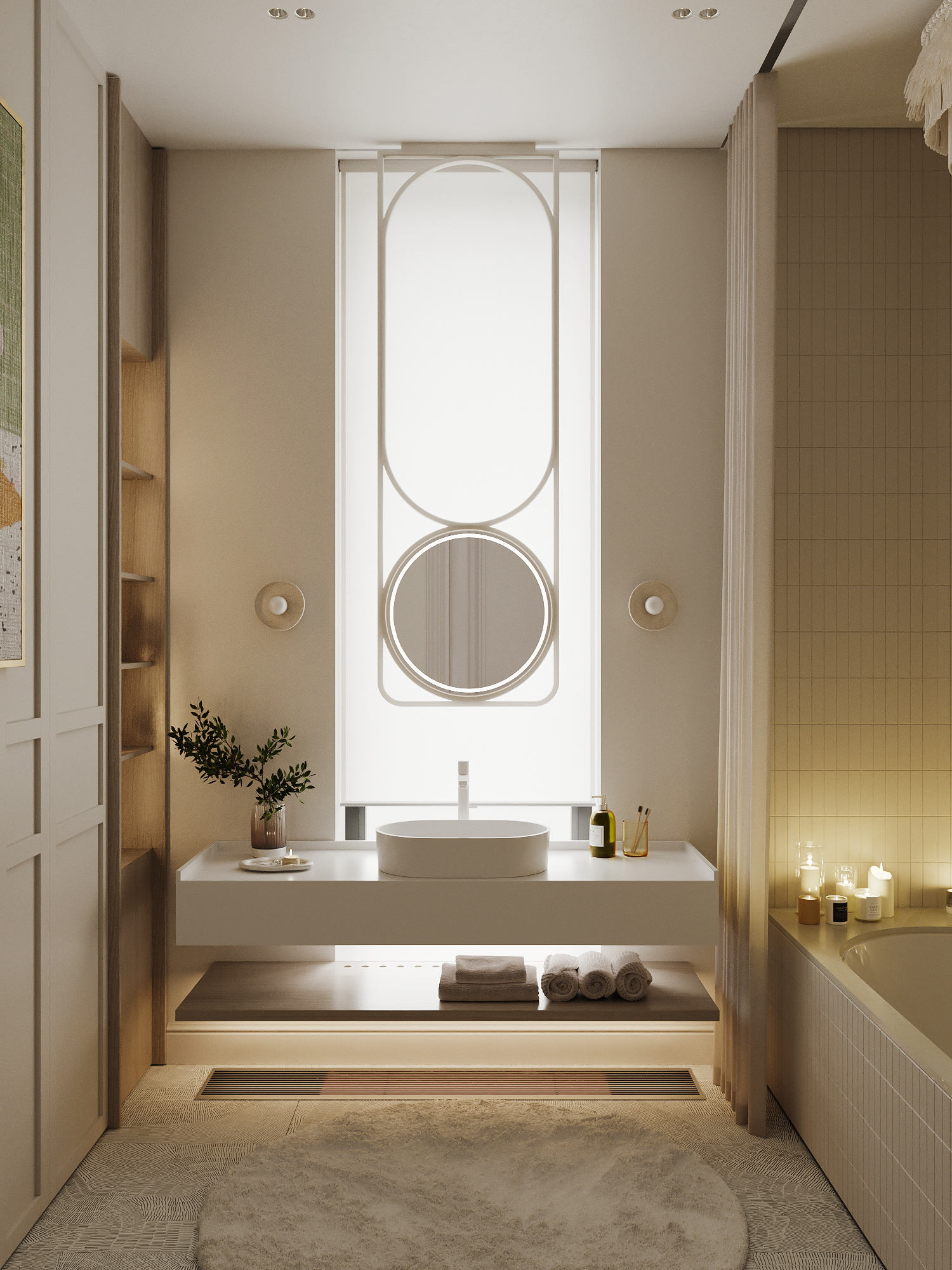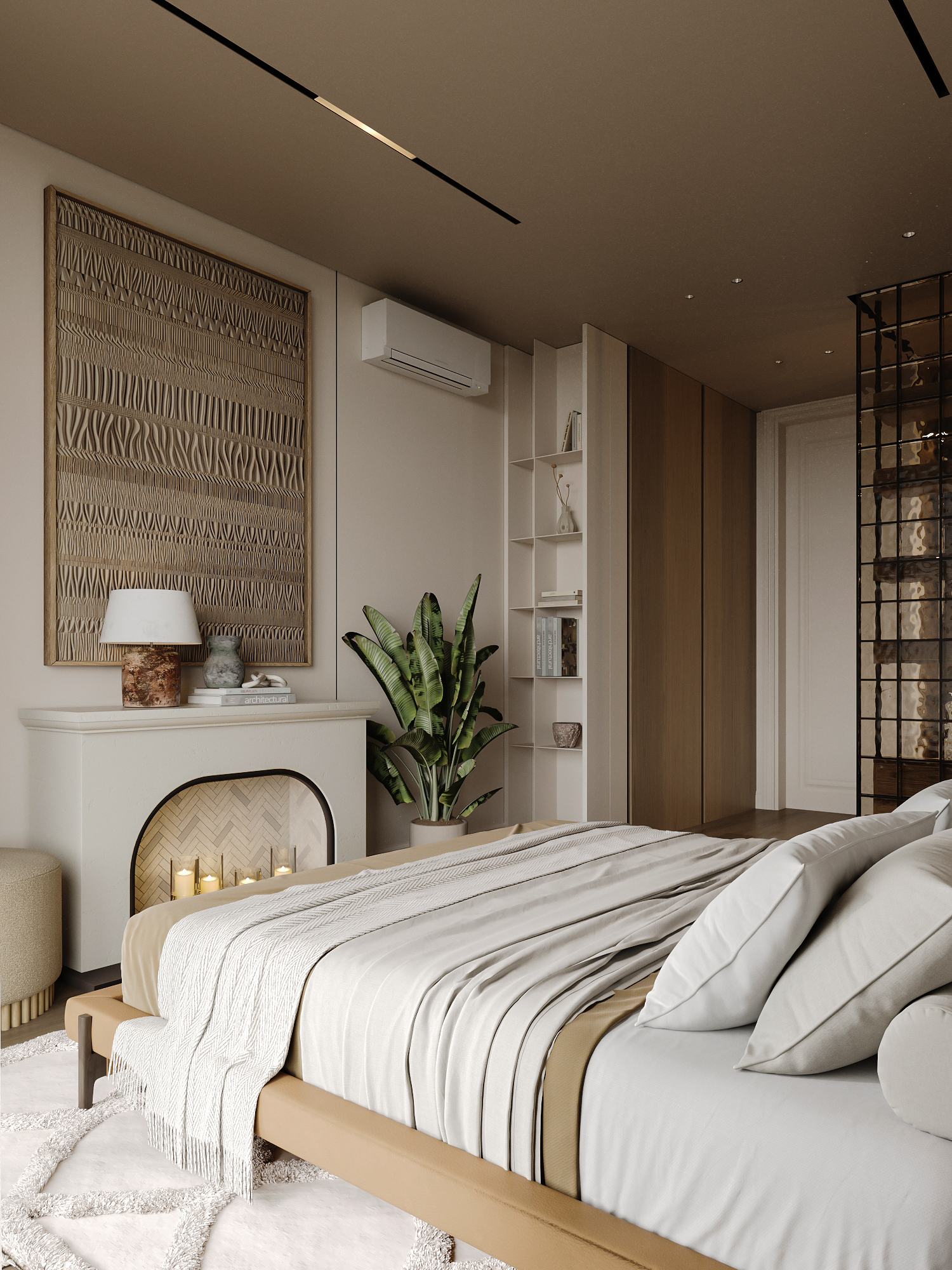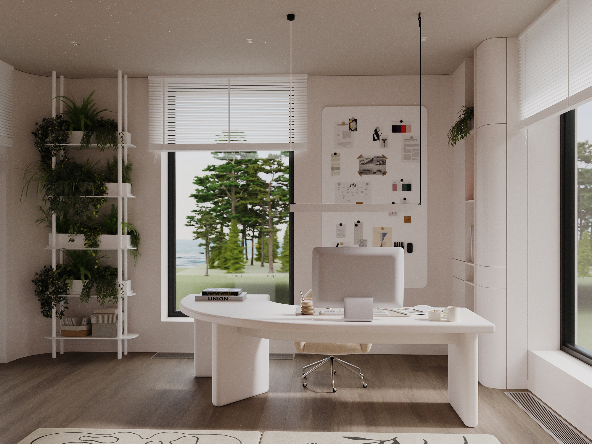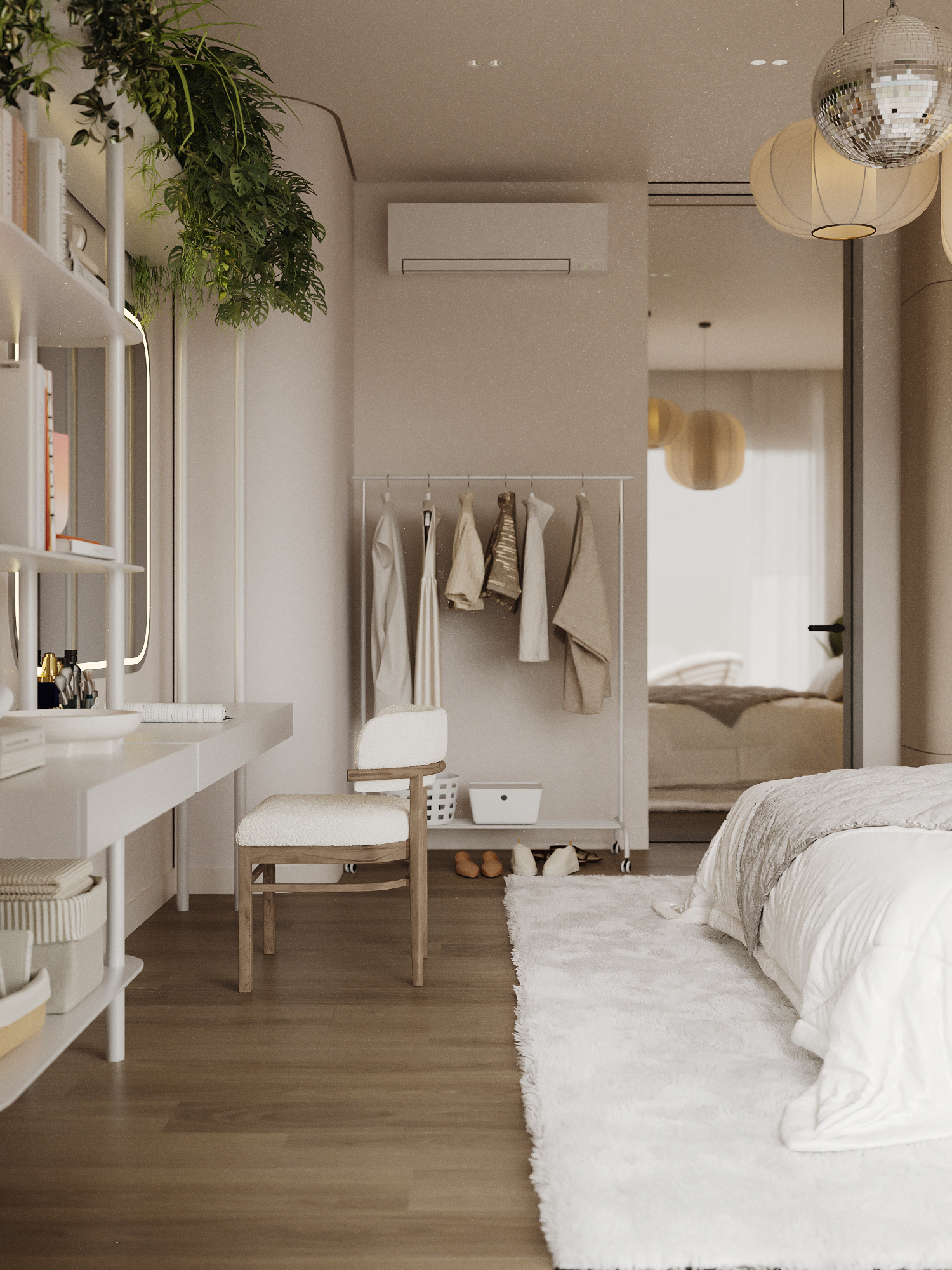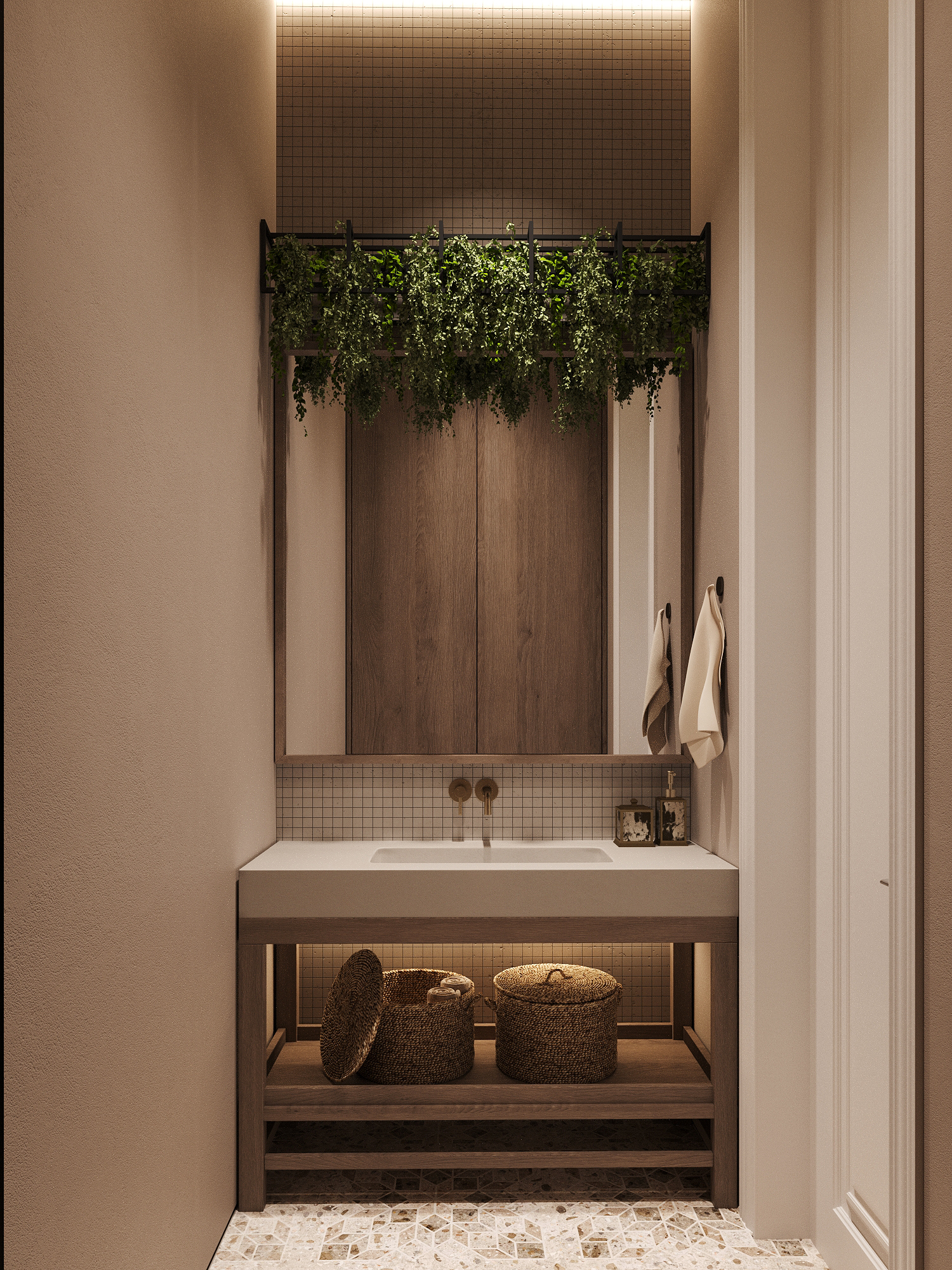 Современный интерьер выполнен в светлой, уютной палитре с акцентом на натуральные материалы и гармоничное сочетание дерева, камня и мягких тканей. Пространство объединяет все помещения, обеспечивая комфорт и функциональность для повседневной жизни и встреч с гостями. Большие окна наполняют помещение естественным светом, создавая атмосферу легкости и спокойствия