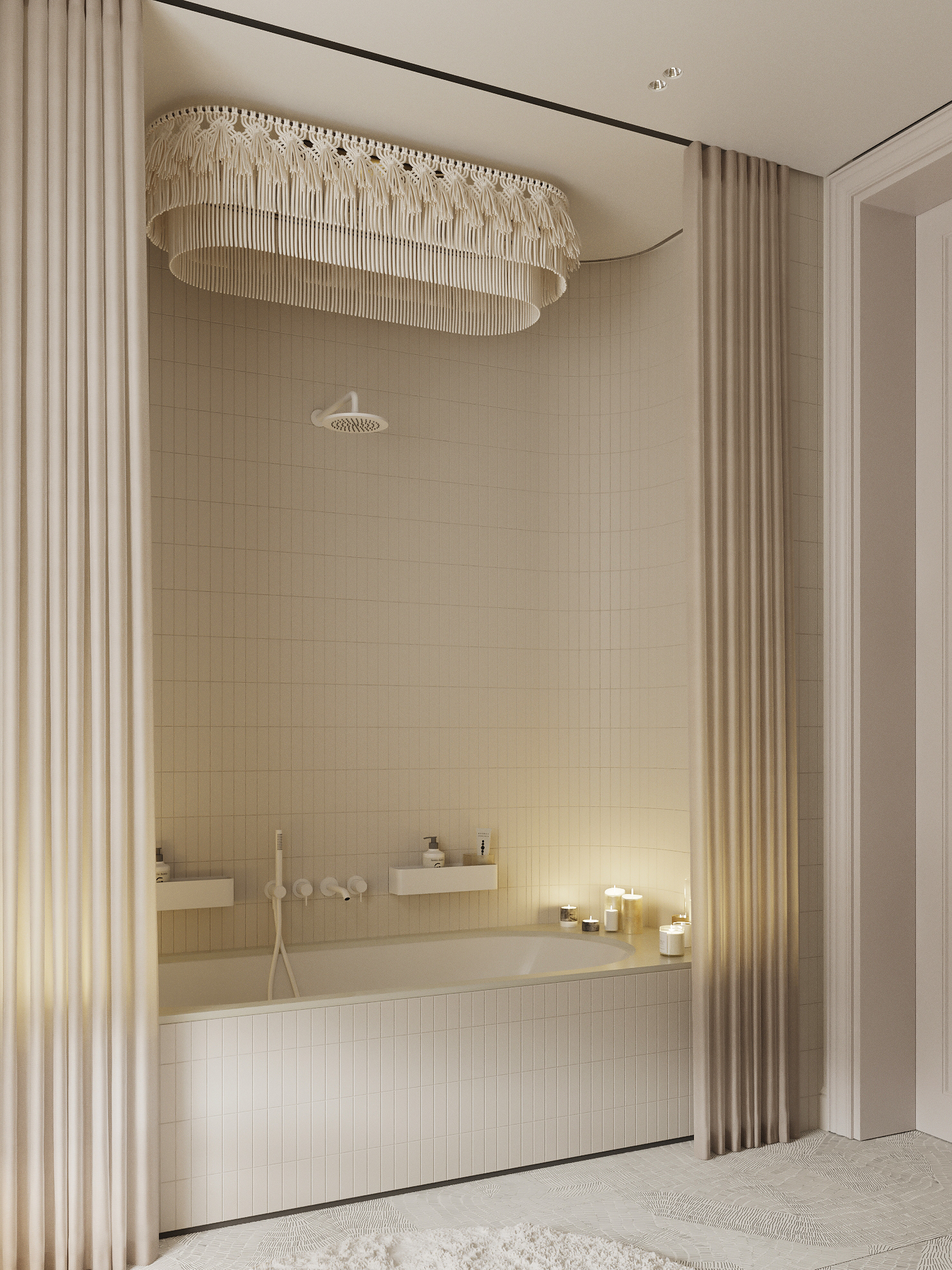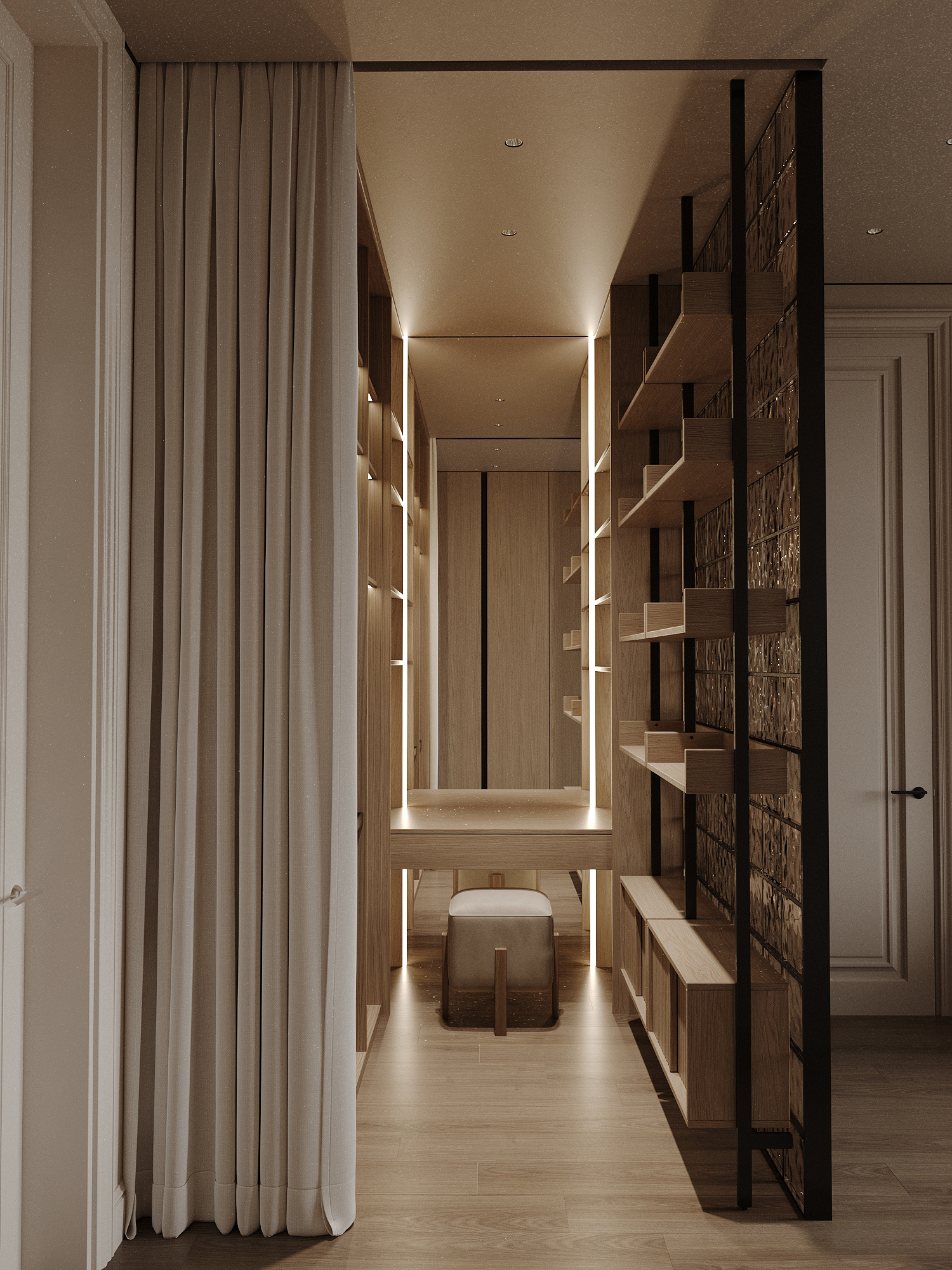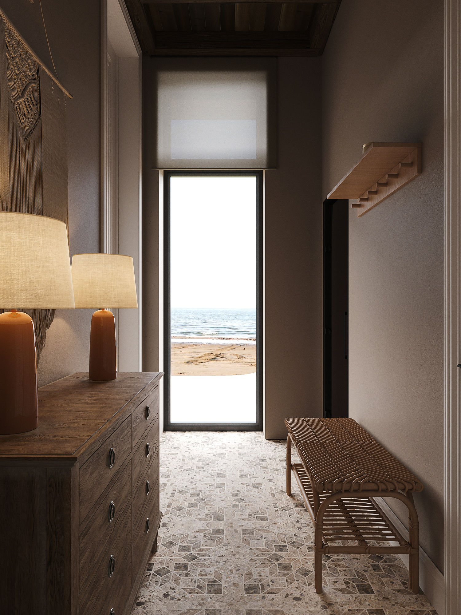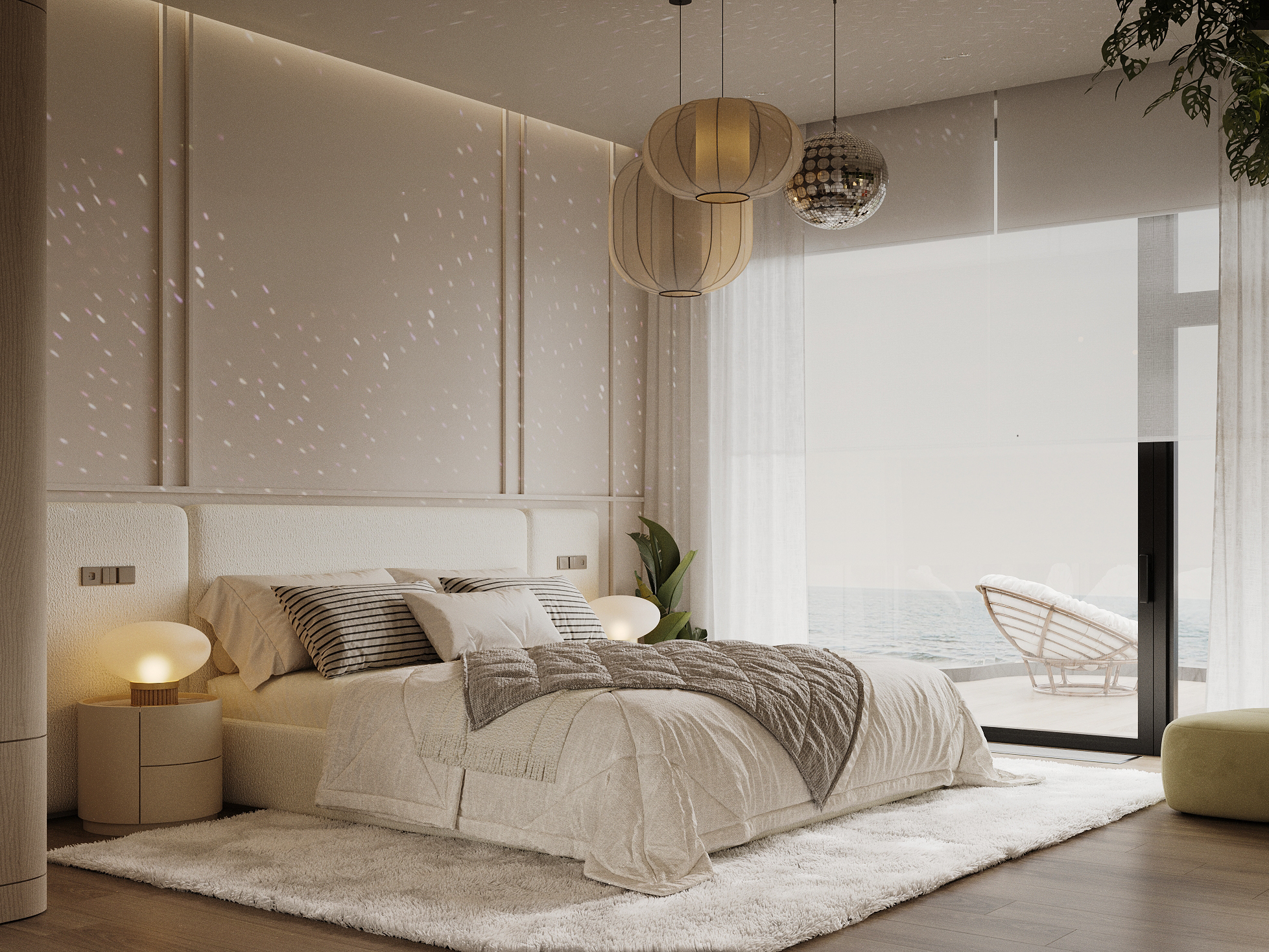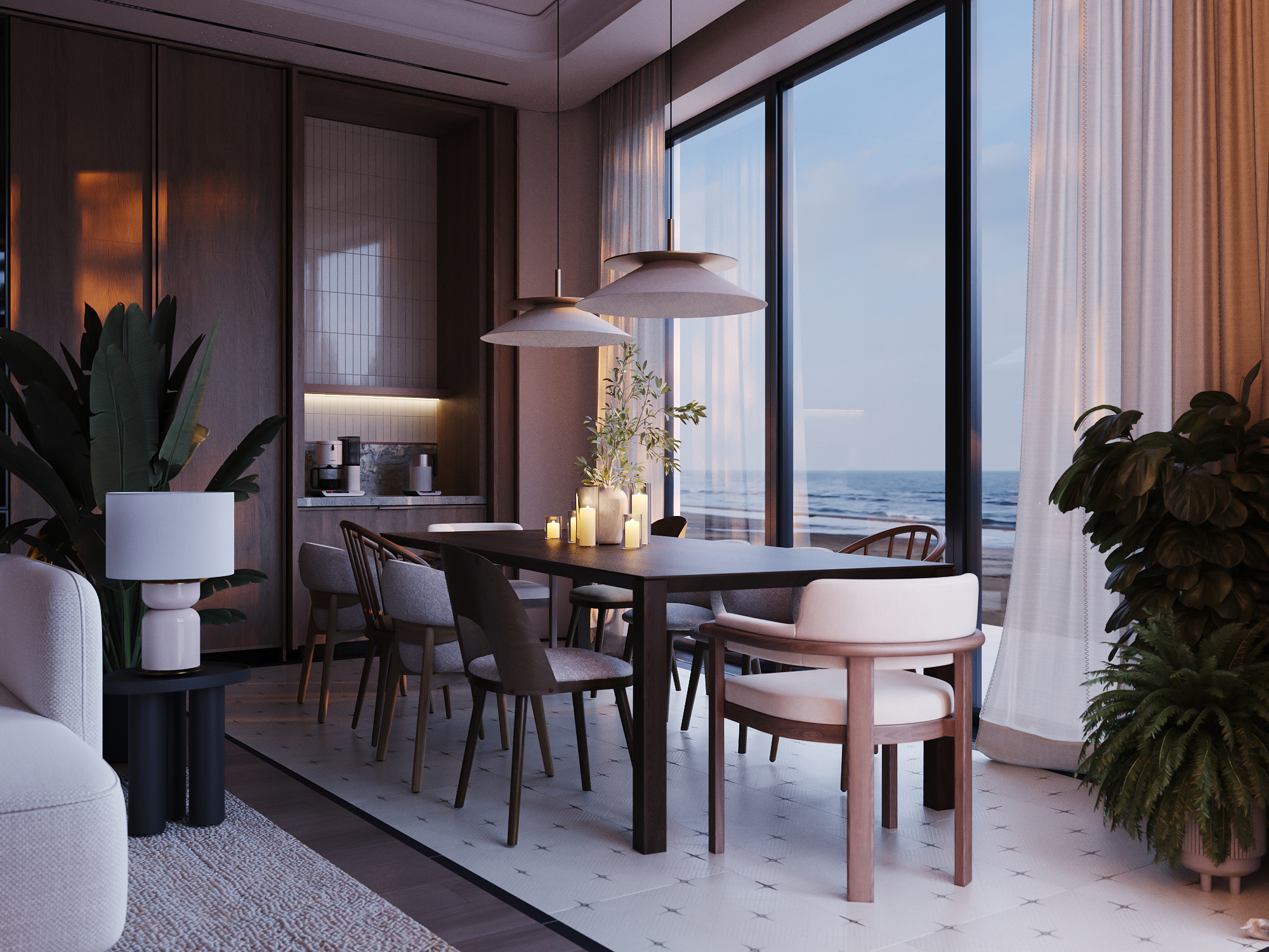 Современный интерьер выполнен в светлой, уютной палитре с акцентом на натуральные материалы и гармоничное сочетание дерева, камня и мягких тканей. Пространство объединяет все помещения, обеспечивая комфорт и функциональность для повседневной жизни и встреч с гостями. Большие окна наполняют помещение естественным светом, создавая атмосферу легкости и спокойствия