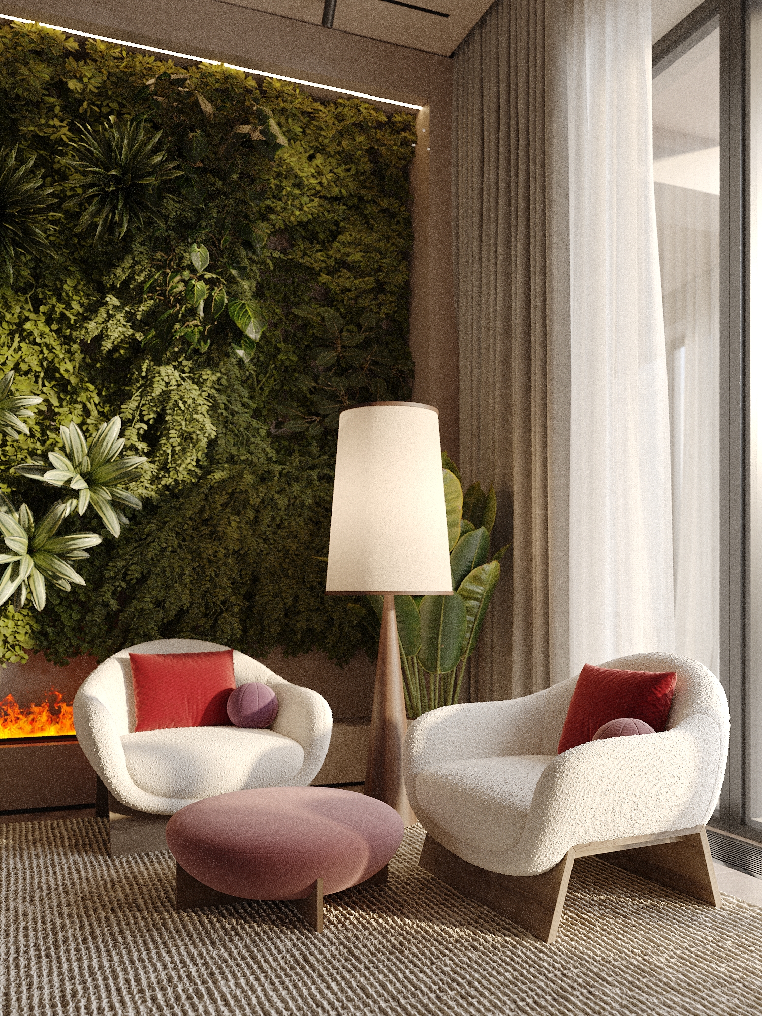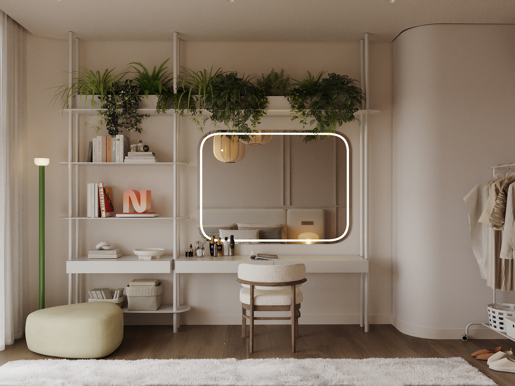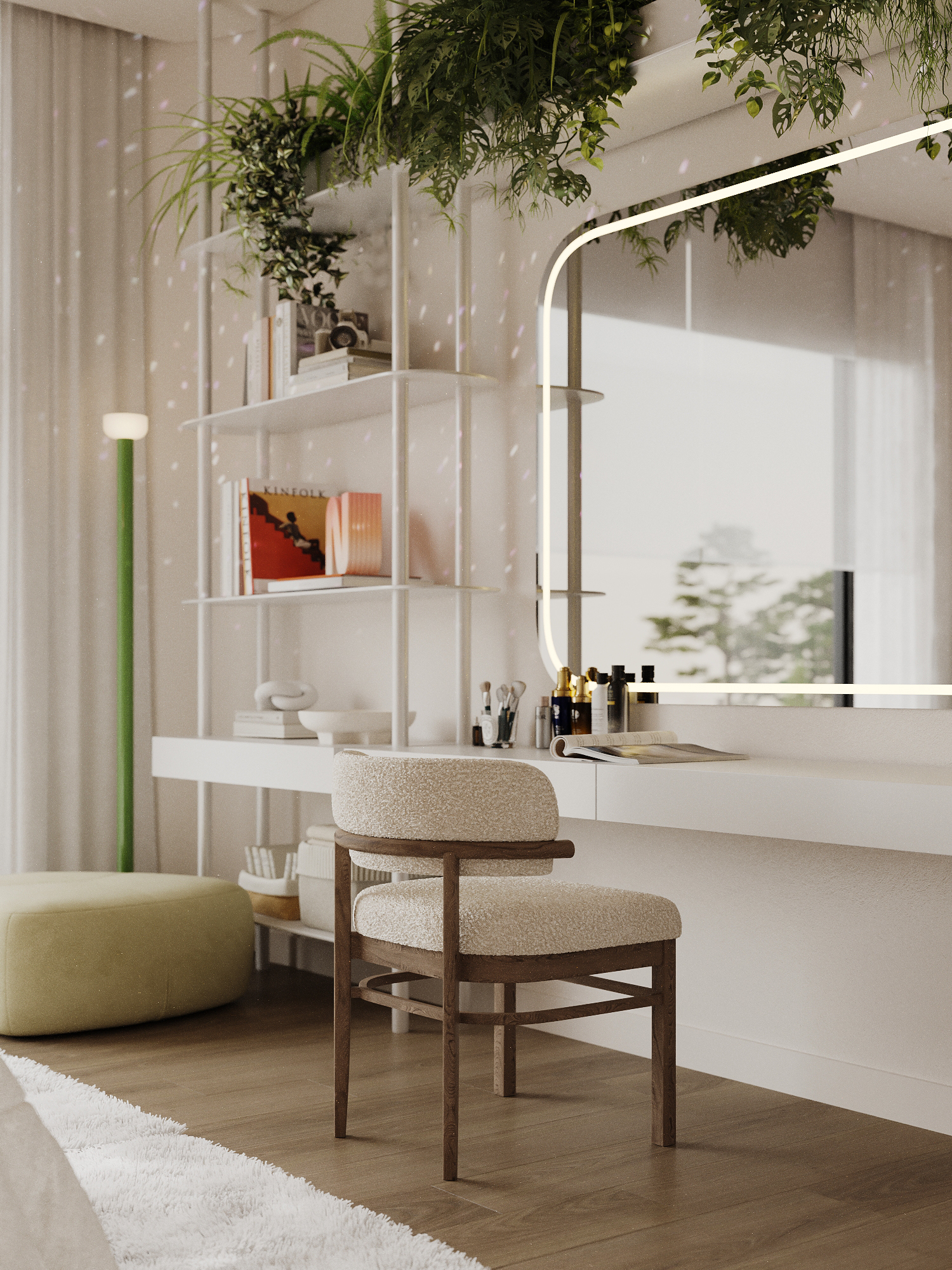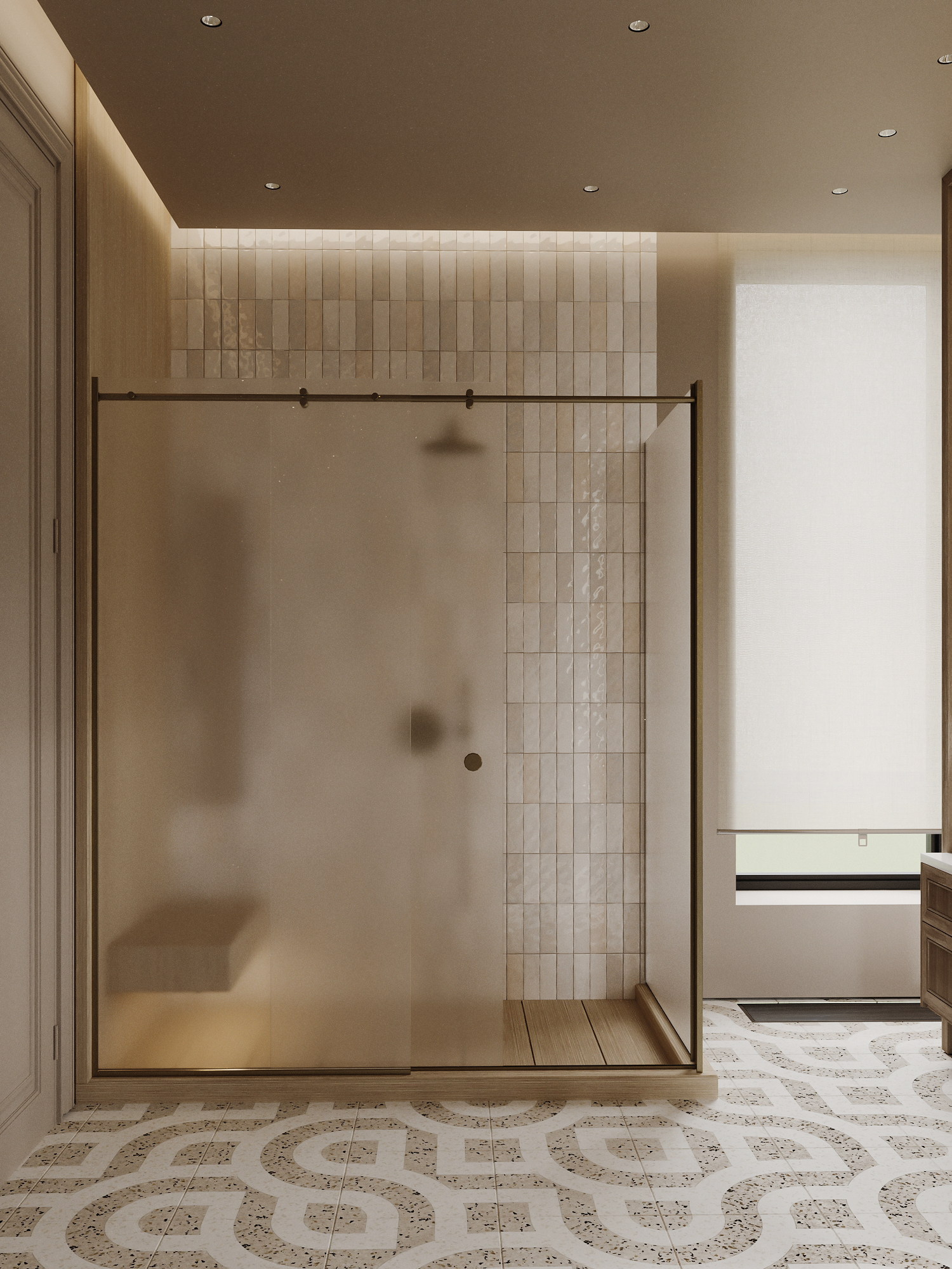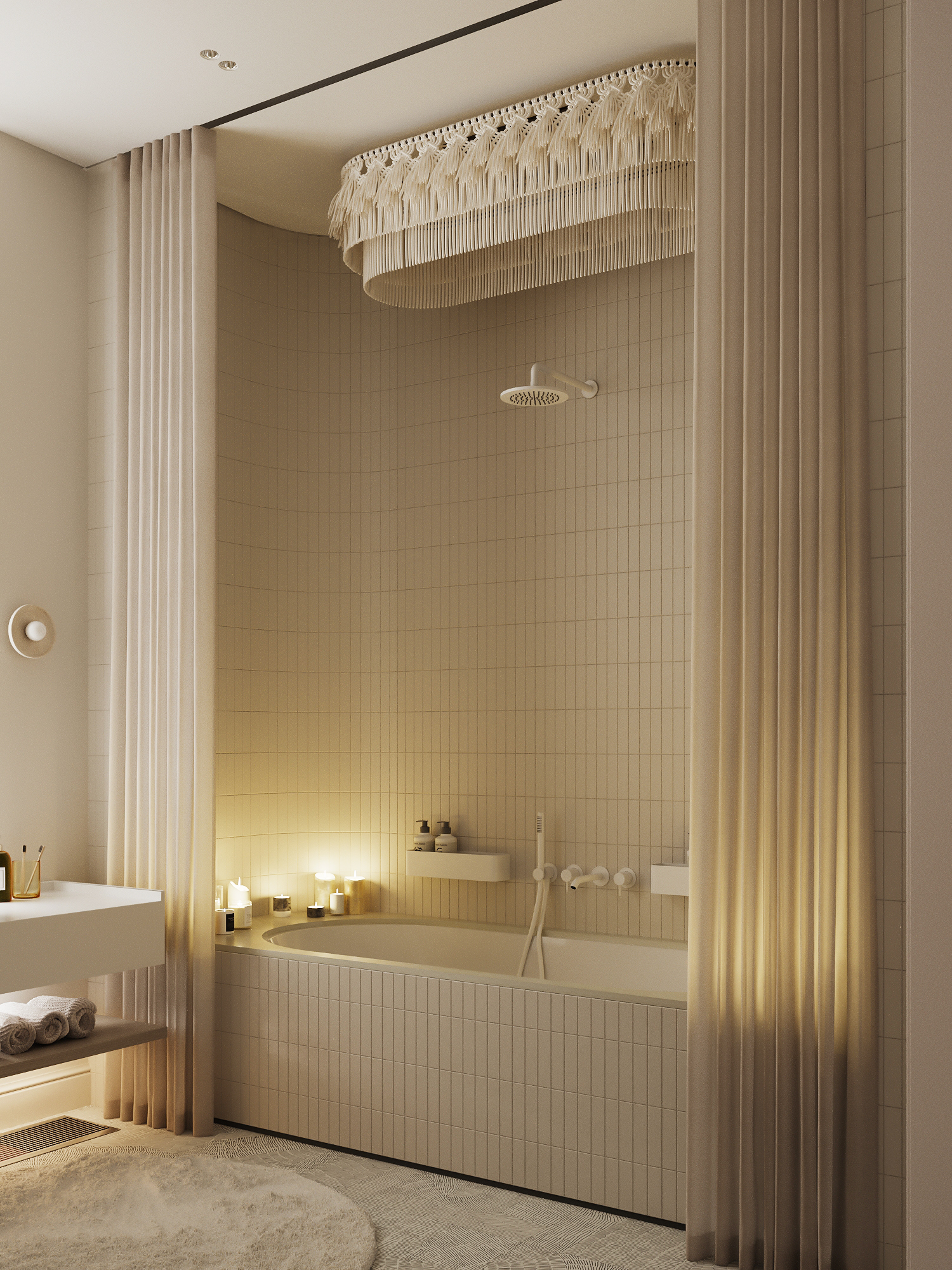 Современный интерьер выполнен в светлой, уютной палитре с акцентом на натуральные материалы и гармоничное сочетание дерева, камня и мягких тканей. Пространство объединяет все помещения, обеспечивая комфорт и функциональность для повседневной жизни и встреч с гостями. Большие окна наполняют помещение естественным светом, создавая атмосферу легкости и спокойствия