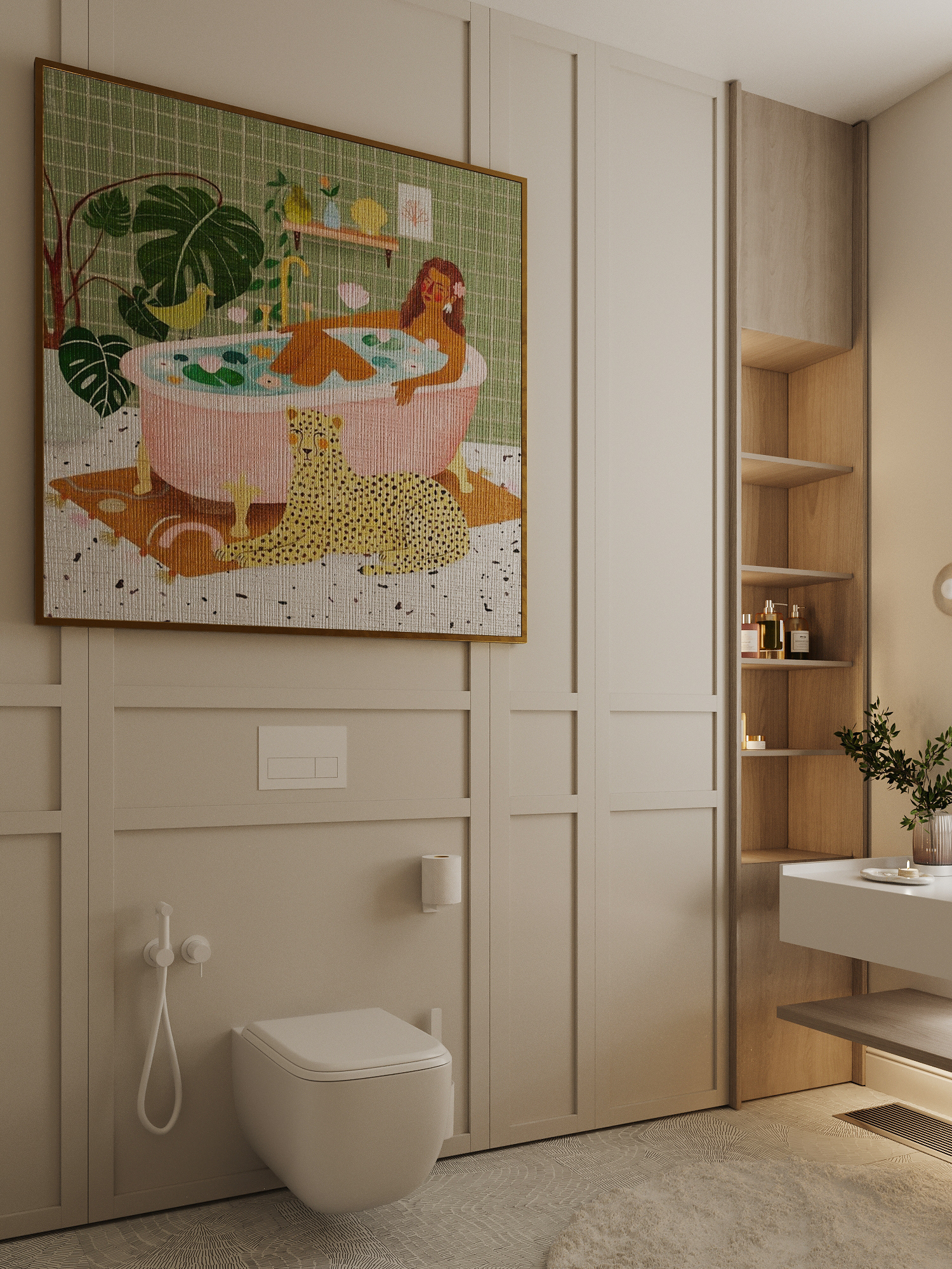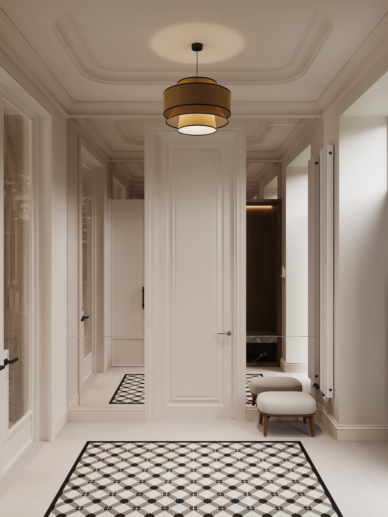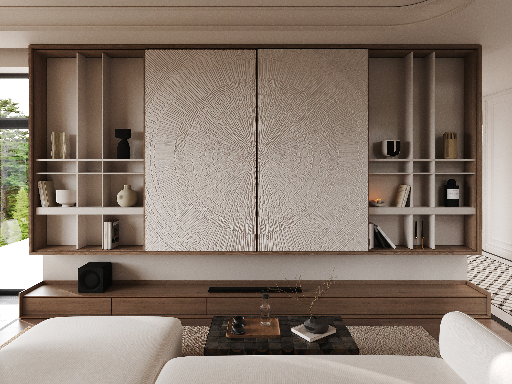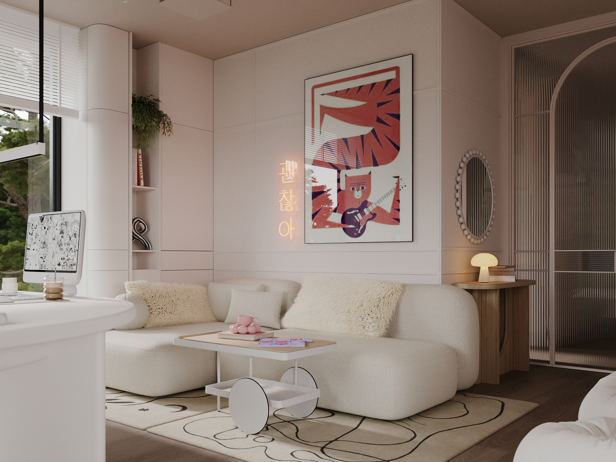 Современный интерьер выполнен в светлой, уютной палитре с акцентом на натуральные материалы и гармоничное сочетание дерева, камня и мягких тканей. Пространство объединяет все помещения, обеспечивая комфорт и функциональность для повседневной жизни и встреч с гостями. Большие окна наполняют помещение естественным светом, создавая атмосферу легкости и спокойствия