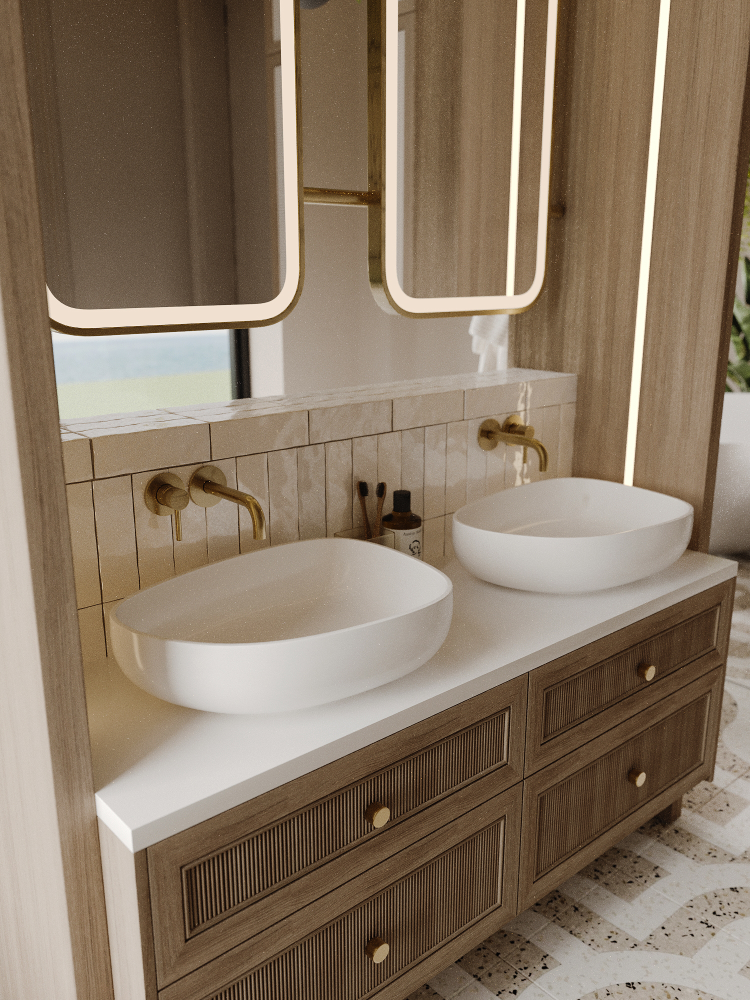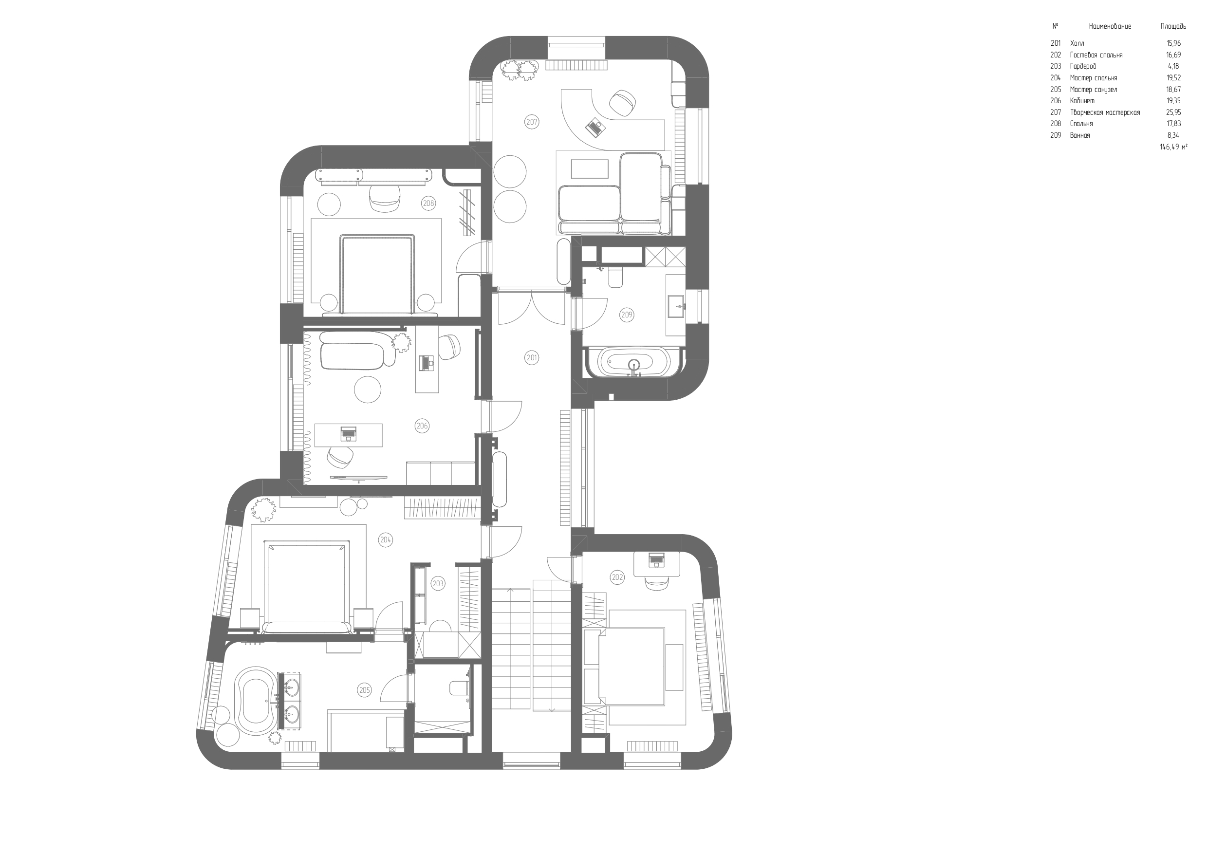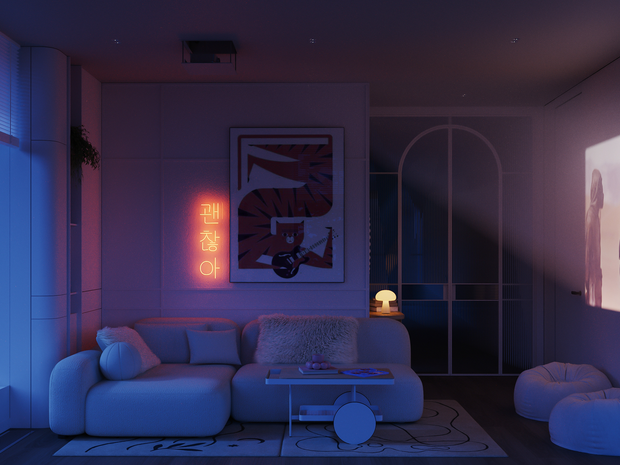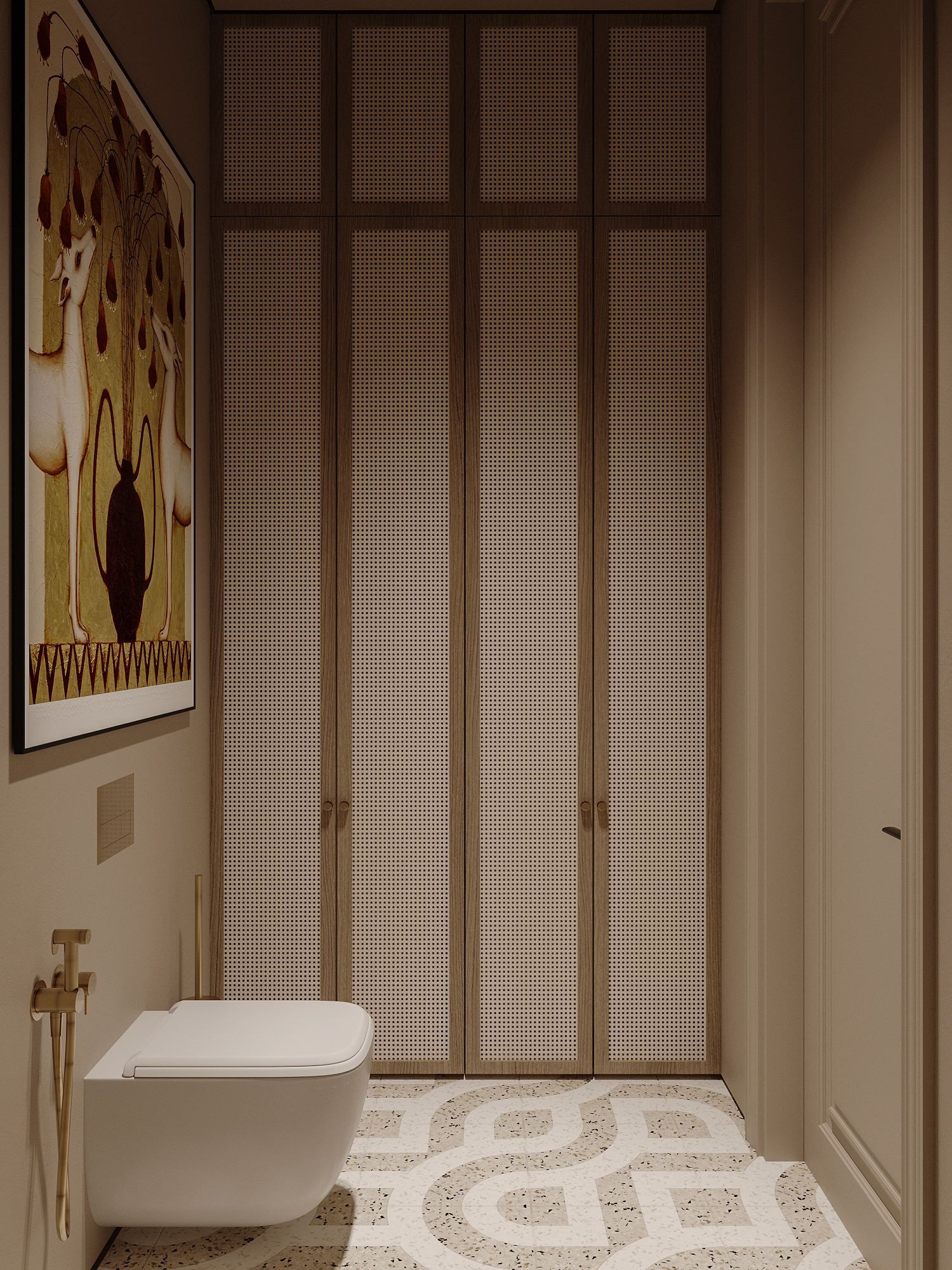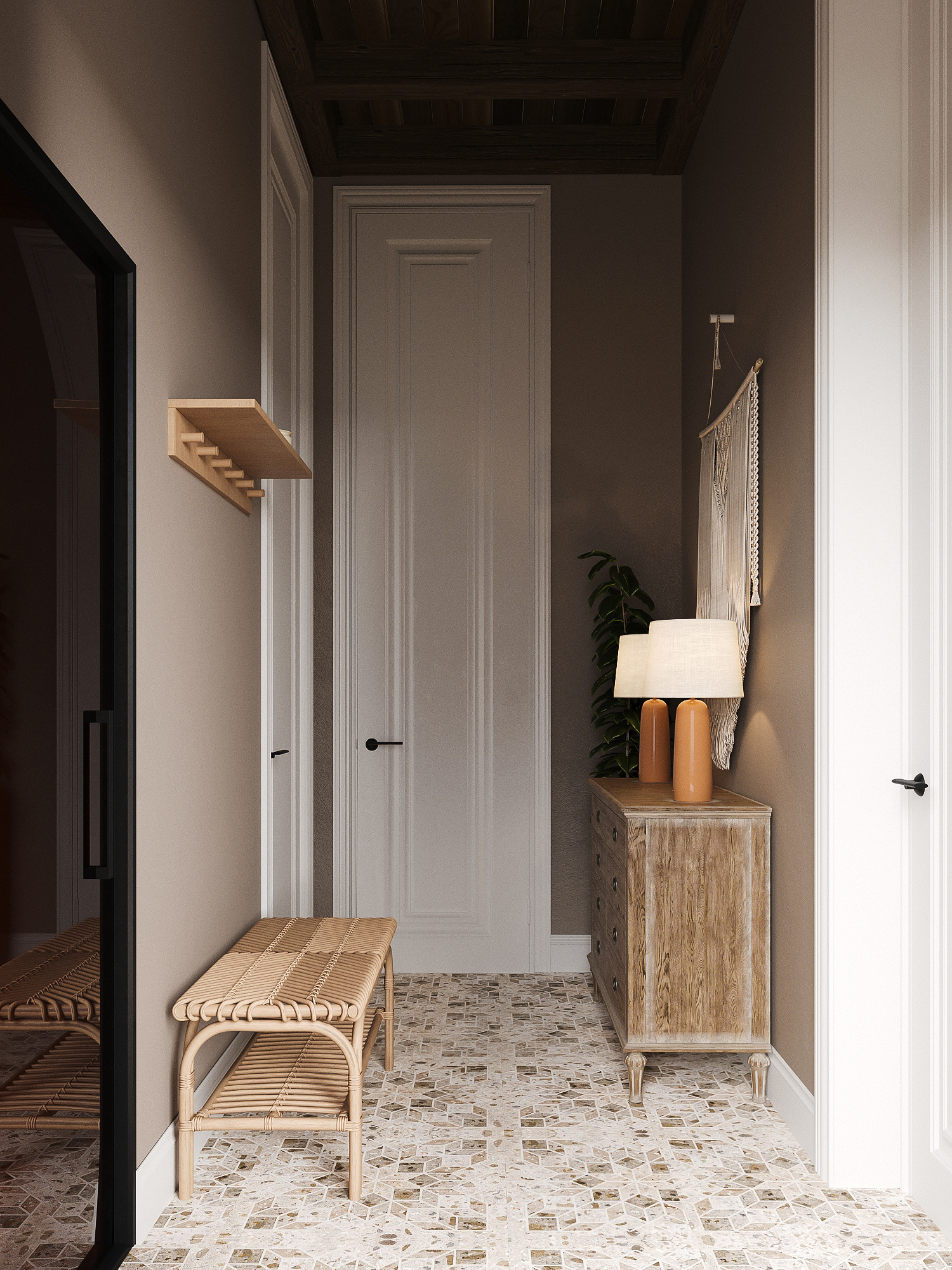 Современный интерьер выполнен в светлой, уютной палитре с акцентом на натуральные материалы и гармоничное сочетание дерева, камня и мягких тканей. Пространство объединяет все помещения, обеспечивая комфорт и функциональность для повседневной жизни и встреч с гостями. Большие окна наполняют помещение естественным светом, создавая атмосферу легкости и спокойствия